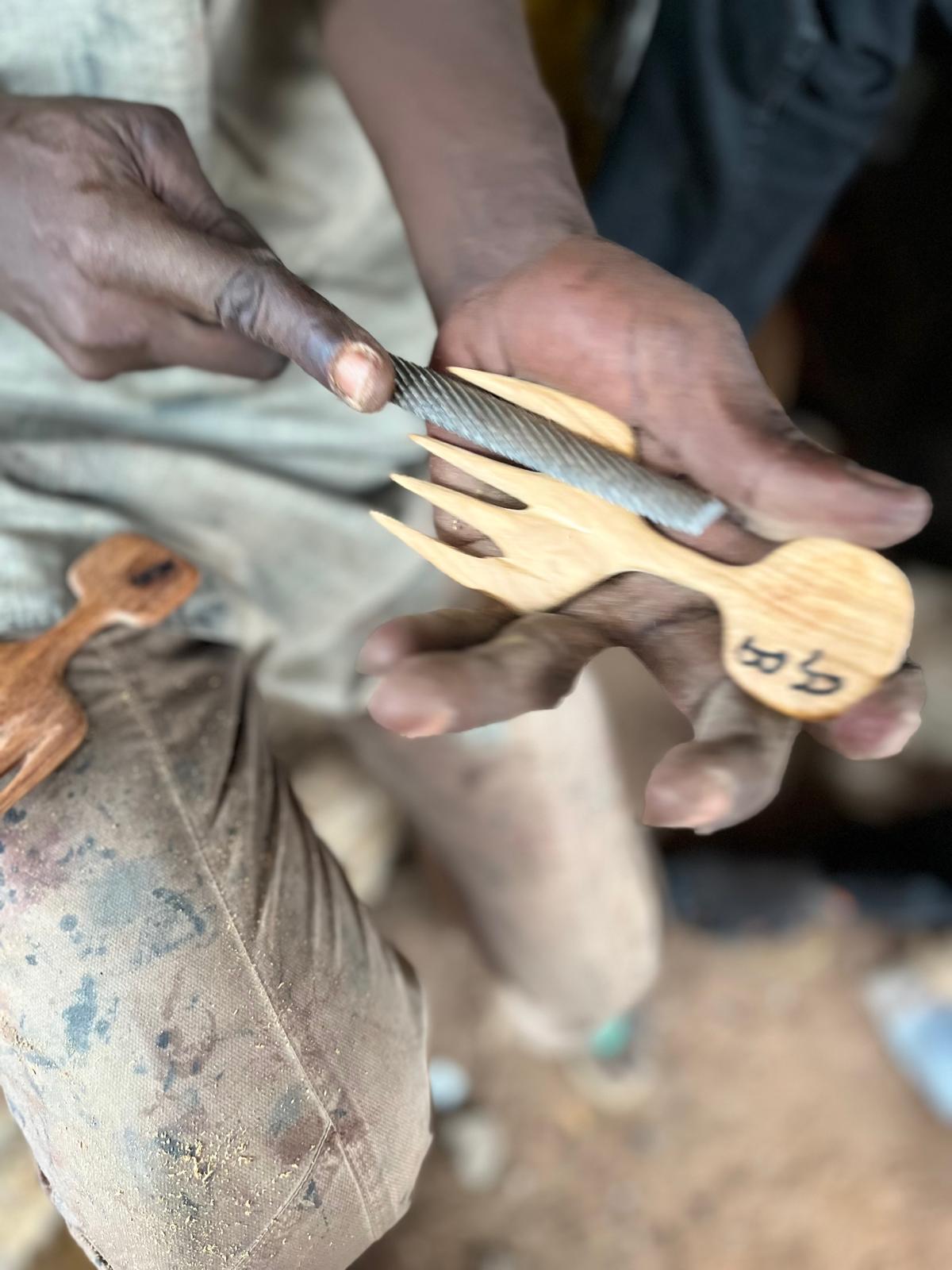 L'artisanat de nos peignes afro en teck est le fruit d'un savoir-faire ancestral transmis de génération en génération. Chaque peigne est façonné à la main par des artisans locaux, dont l'expertise découle d'une longue tradition de travail du bois. Ces maîtres artisans sélectionnent avec soin le teck, un bois noble et durable, pour créer des outils capillaires qui allient robustesse et finesse.
